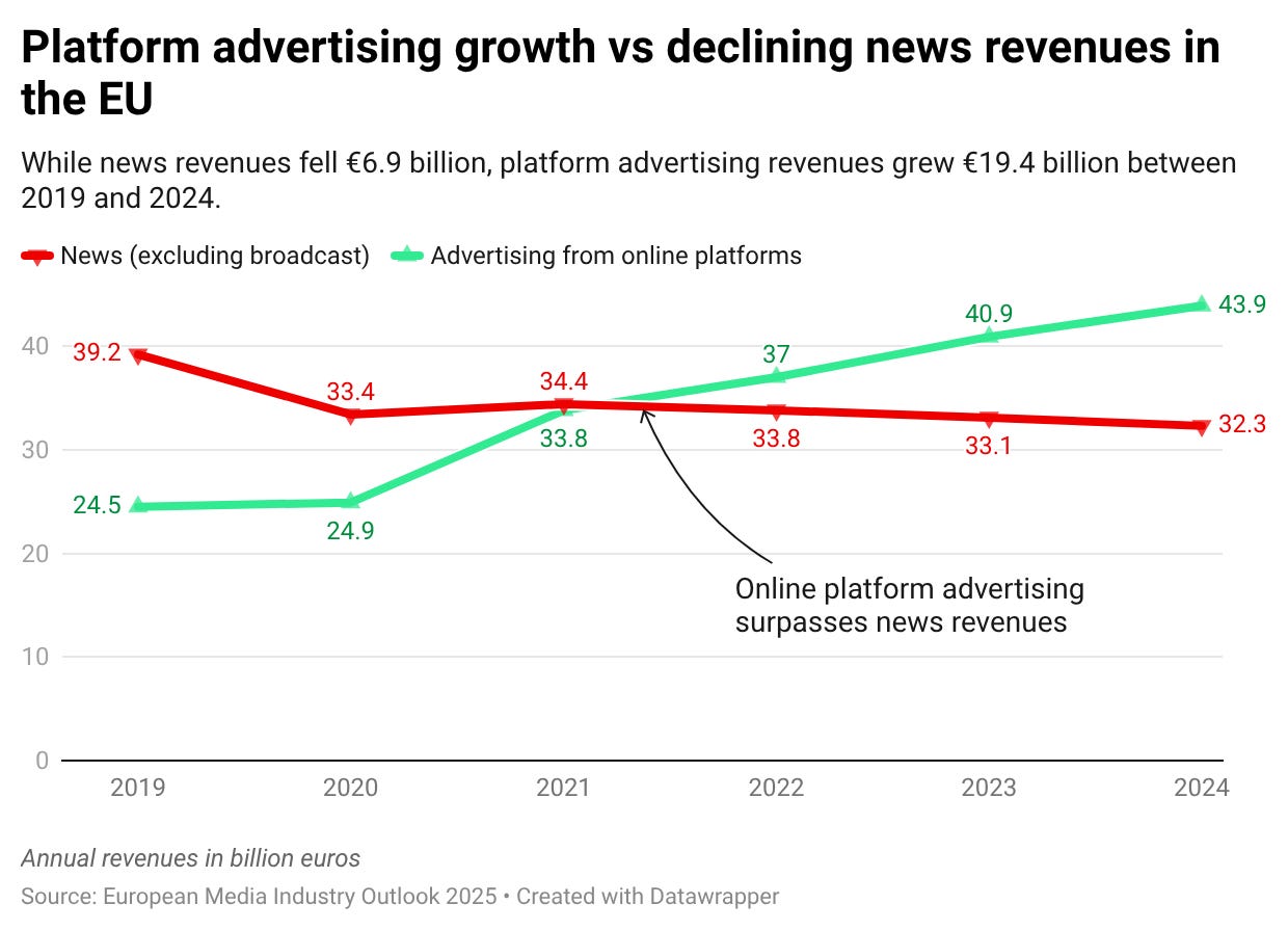 That’s the baseline we’re starting from: less money in the system to pay for reporting, editing, distribution, legal risk, and all the other boring things journalism depends on.